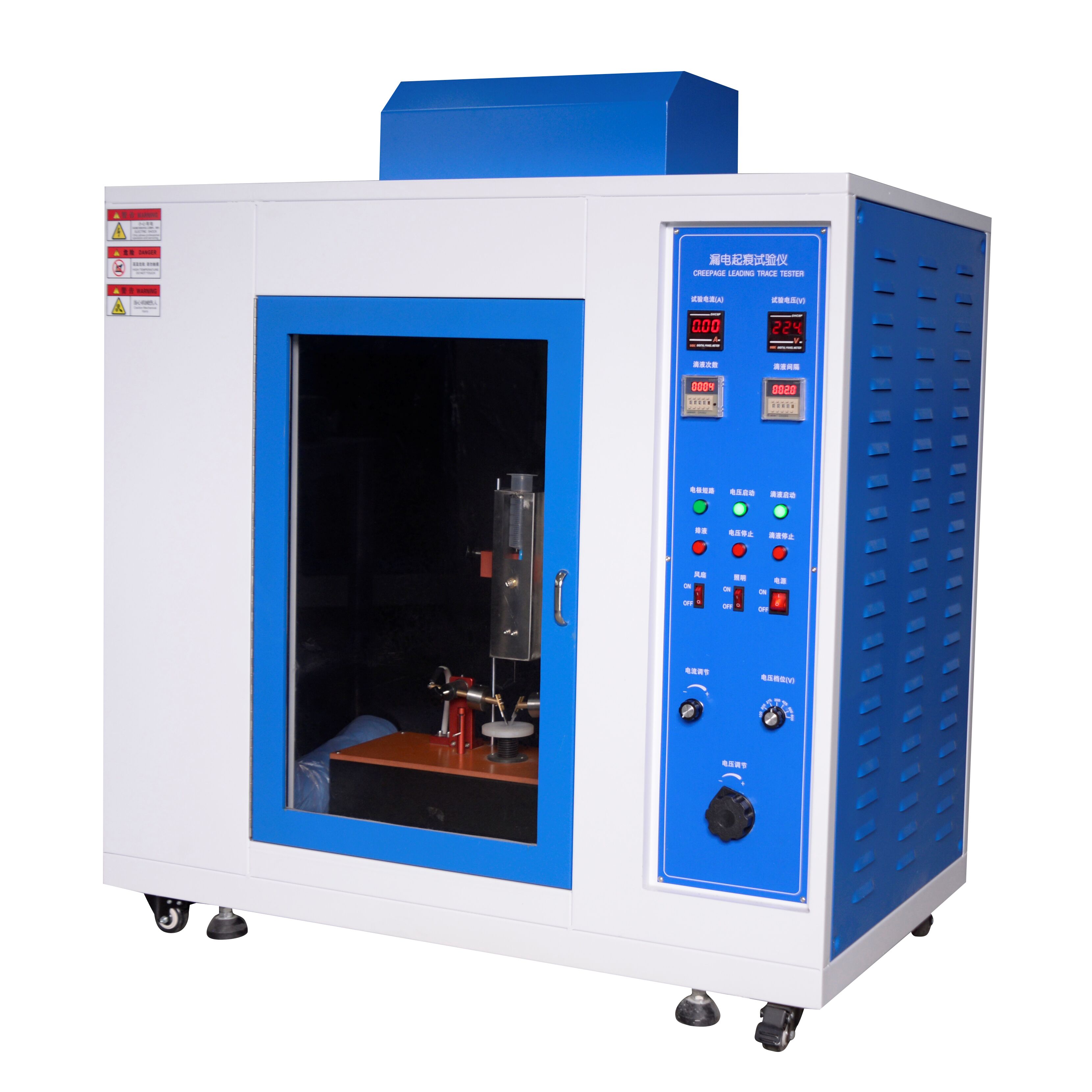 参数设定:根据测试要求设定试验电压(常见100~600V)、滴液速率(1滴/30s)、试验时长(通常60min)。
