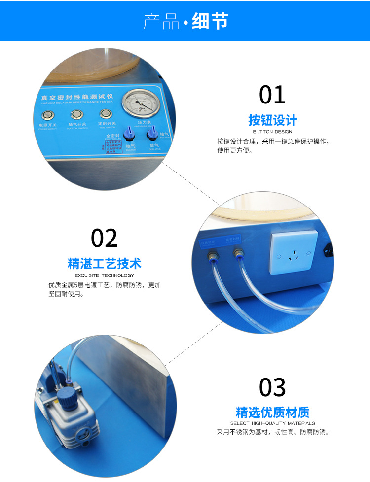 依据样品特性精准设定:结合样品材质、密封结构及缺陷预估尺寸设定浸泡时间。常规硬质密封件(如金属接头、玻璃瓶)在标准压力(0.1-0.2MPa)下,浸泡10-30分钟即可;软包装样品(如铝箔袋、塑料膜)需缩短至5-15分钟,避免材质吸水变形;针对预估存在微小缺陷的样品,可适当延长至30-60分钟,但需同步设置空白对照样,排除过度浸泡的干扰。